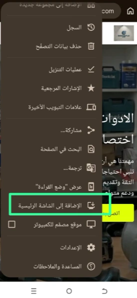 3- ابحث عن (اضافة الى الشاشة الرئسية)غالبا في الاسفل